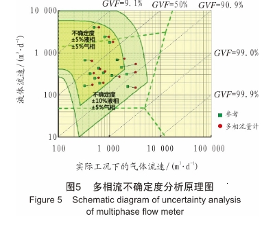 用范围也不尽相同,归纳起来主要有3种方向指导选型:①基于完全混合模型的多相流量计的选择;②基于部分分离模型的多相流量计的选择;③基于完全分离模型的多相流量计的选择。 基于完全混合模型的多相流量计的选择,可以参考API于2005年9月出版的多相流测量做法(即API RP 86一2005《API Recommended Practicefor Measurement of Multiphase Flow),该做法给出了此类多相流量计的基本原理、分类、标定、性能测试、安装、操作和不确定度分析等多方面的指导性说明。图5为该标准提供的多相流不确定度分析原理图川。从图5可看出,在一定的GVF范围内,多相流量计的不确定度***理想,为士5%(图5中左边黄色区域);随着GVF的逐渐增大,不确定度数值增加到士1000;而在高GVF区域(图5中右边区域),不确定度超出士10000 基于完全分离模型的多相流量计,即类似传统大